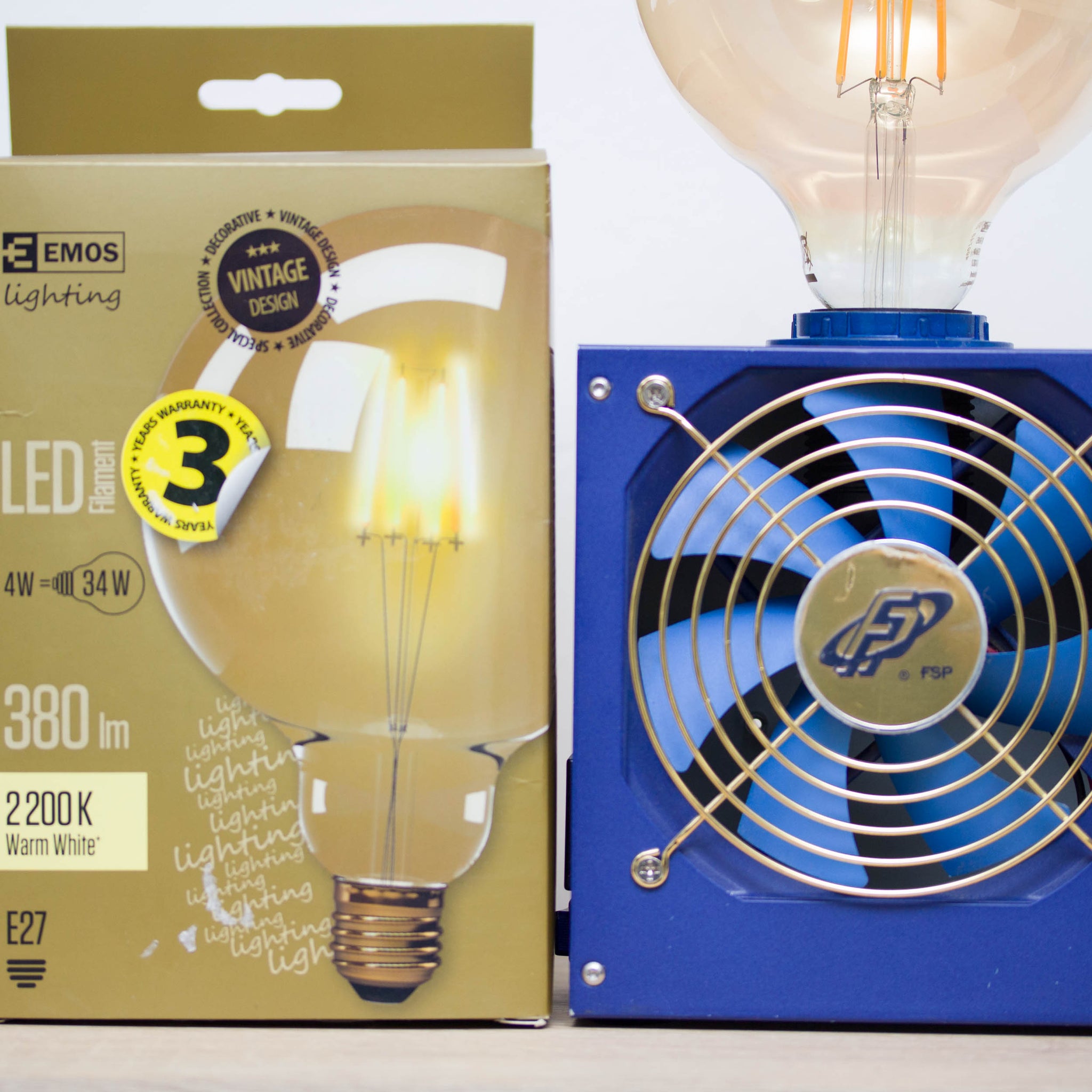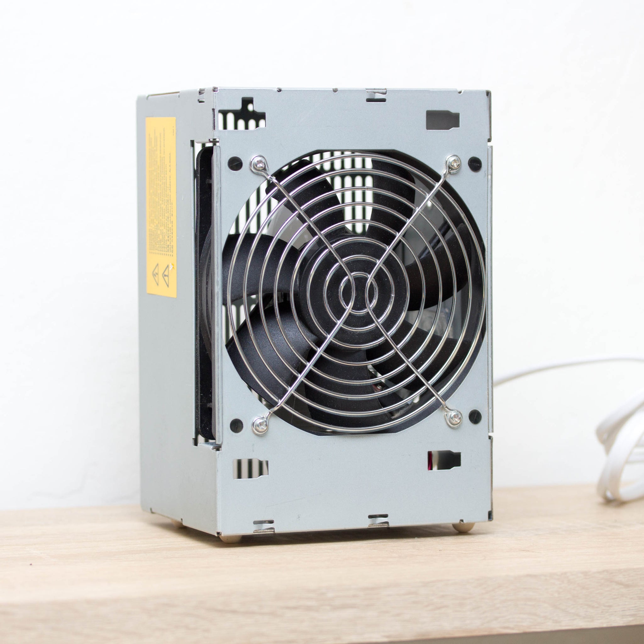 Table lamp made with recycled computer power supply unit