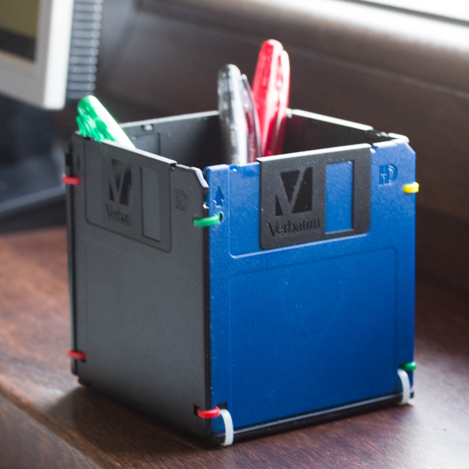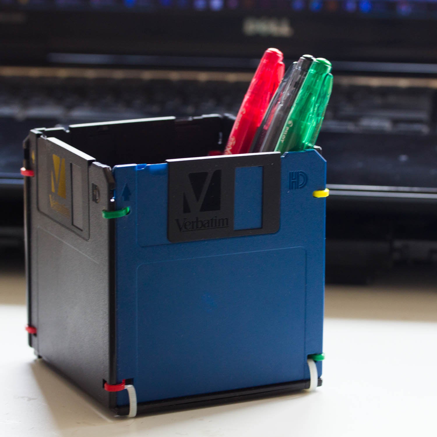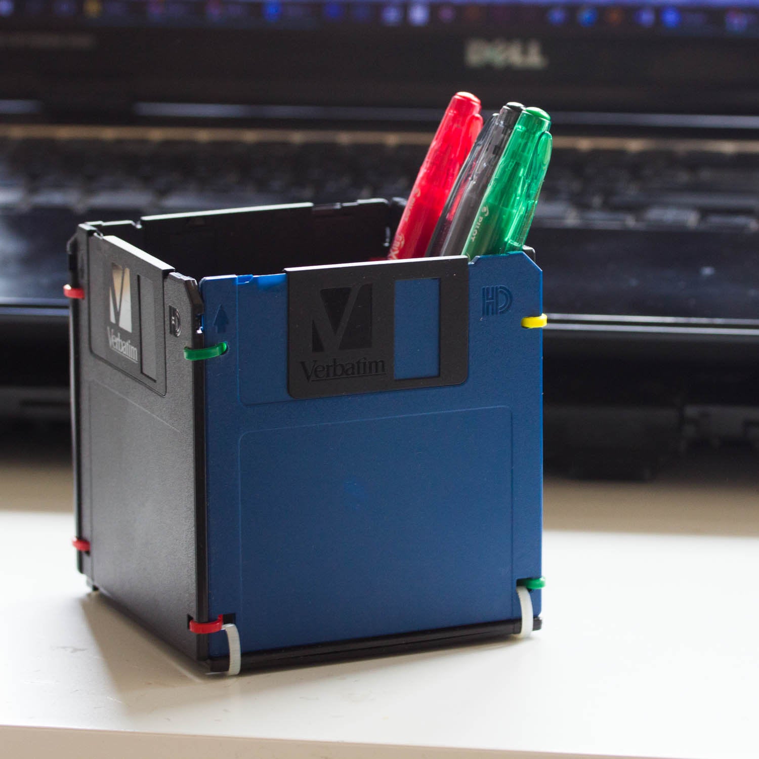 The pen holder made out of black and blue floppy disks. A perfect small gift for a co-worker or that special geek in your life.*****SHIPPING TERMS*****The item is ready made...