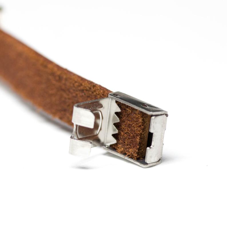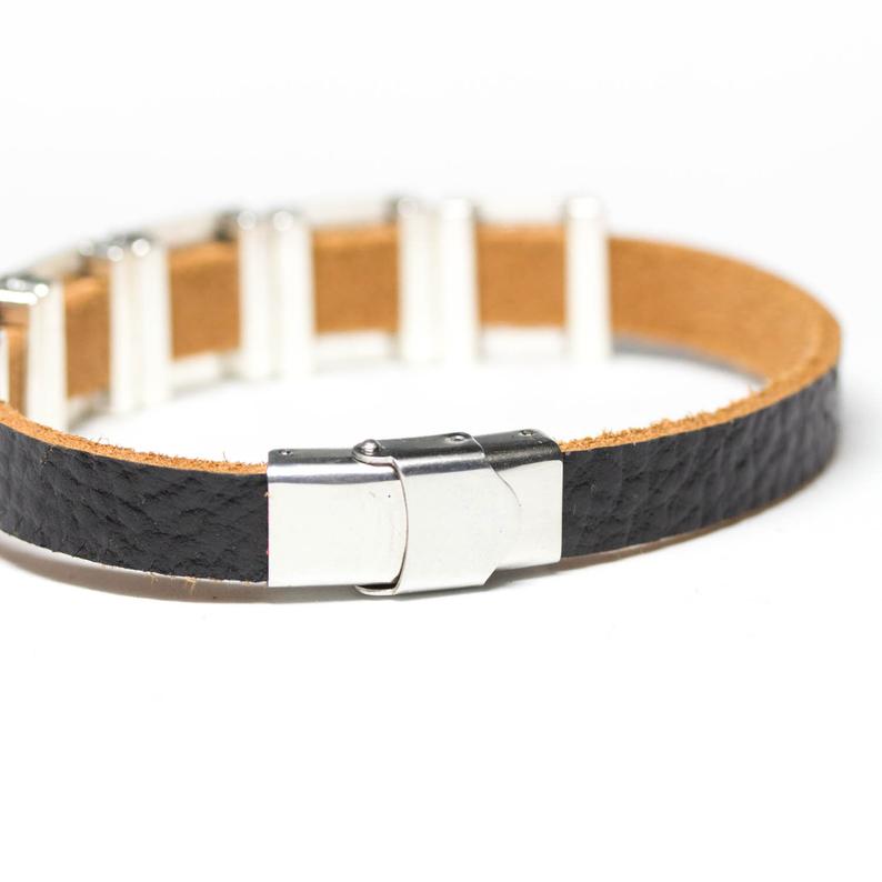 We cut the bracelet to be 25 cm long (10"). You can adjust the length by taking off one of the clasp's sides, cutting the leather to the required length...
