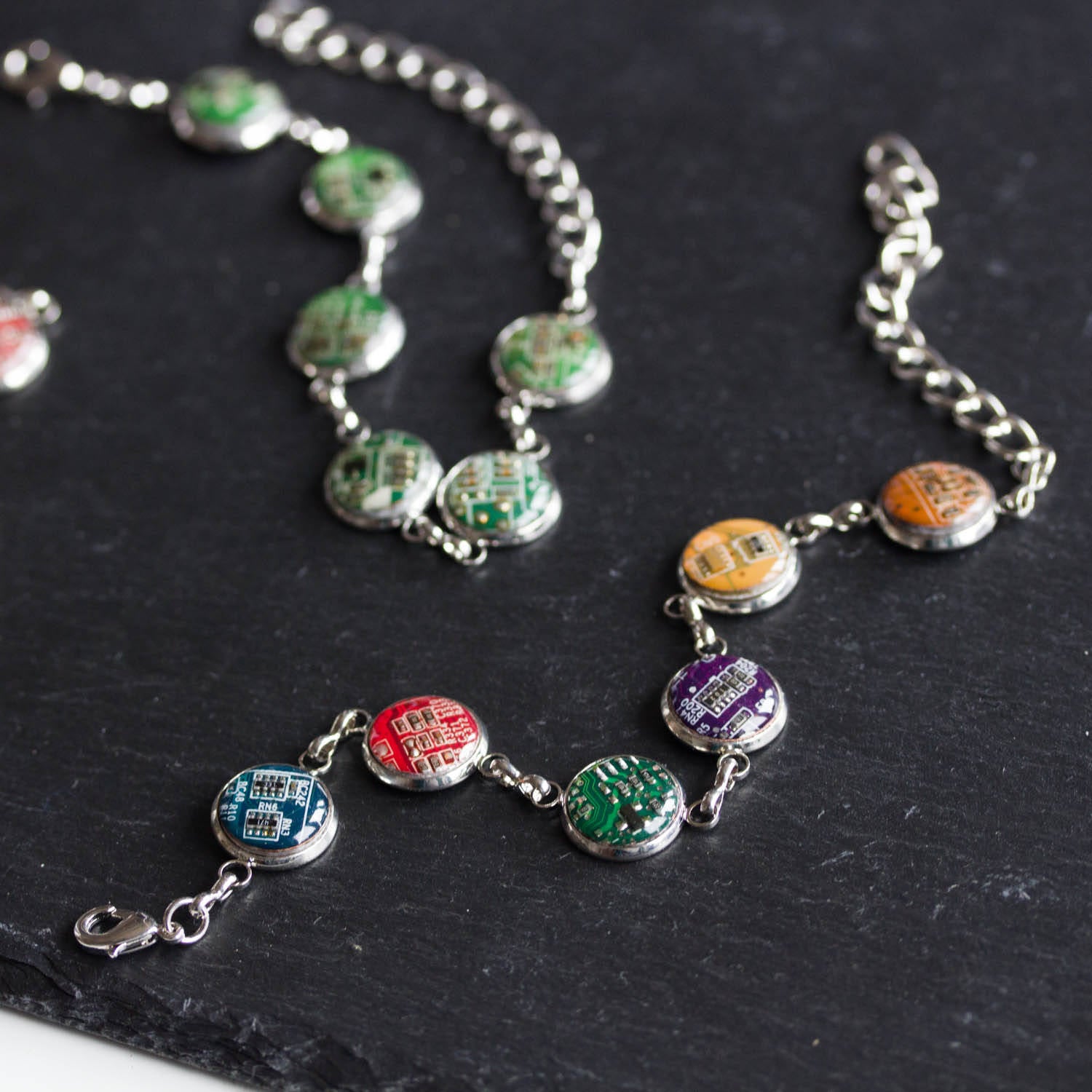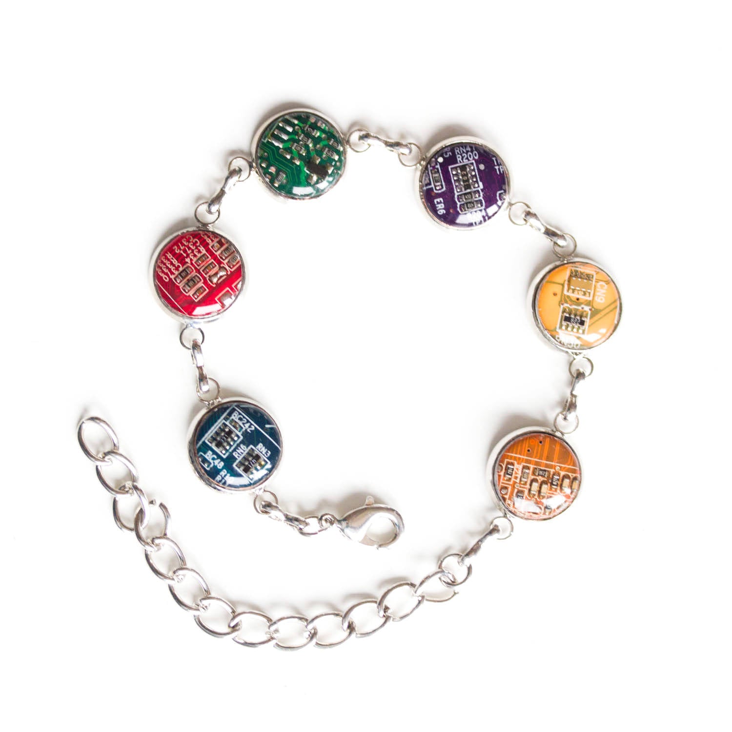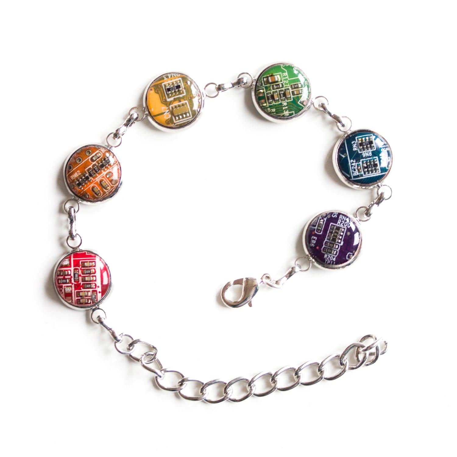 Colorful bracelet made with recycled circuit board, rainbow bracelet, unique jewelry