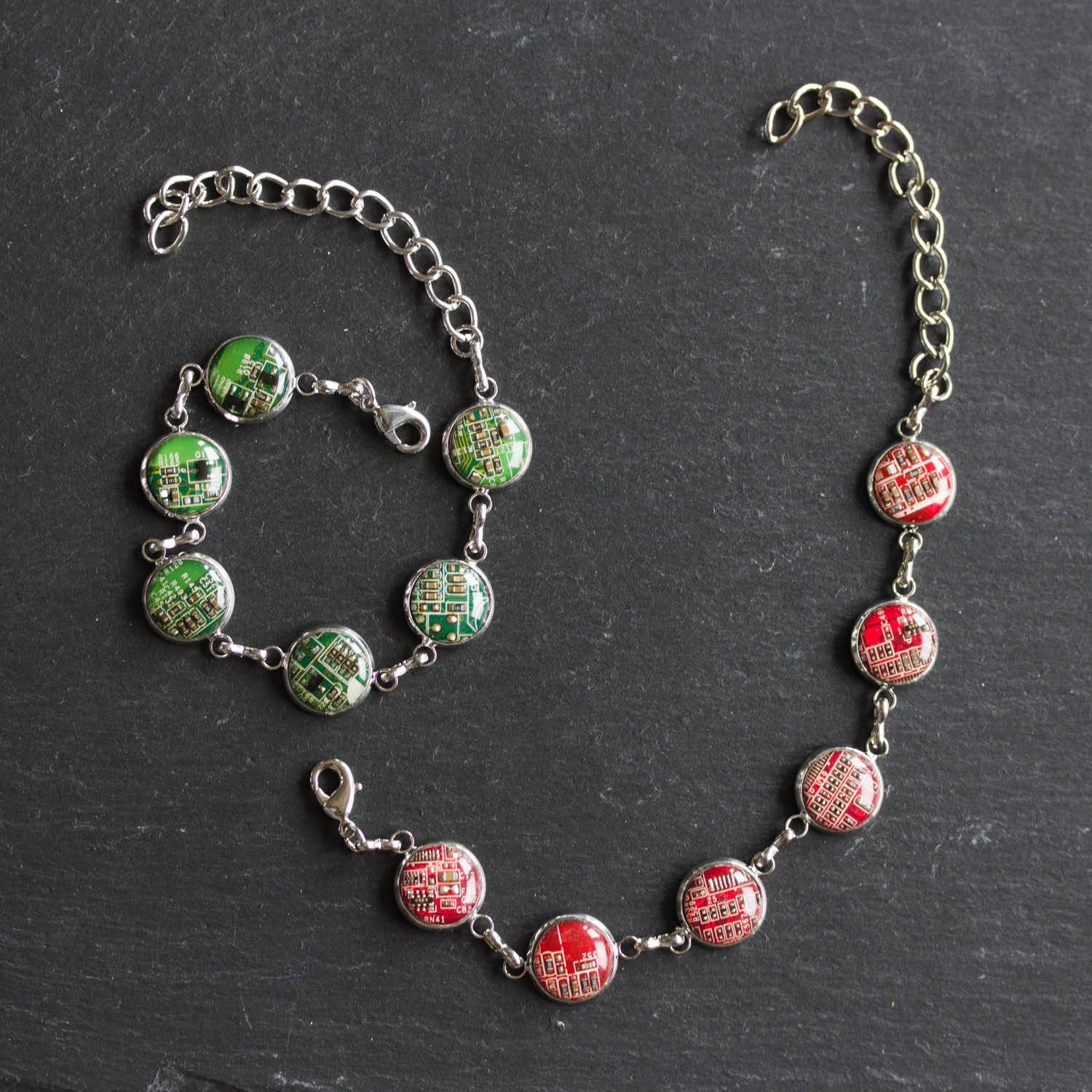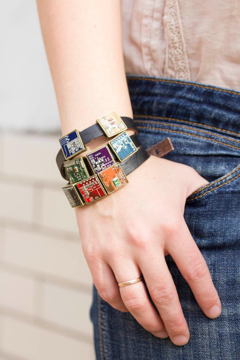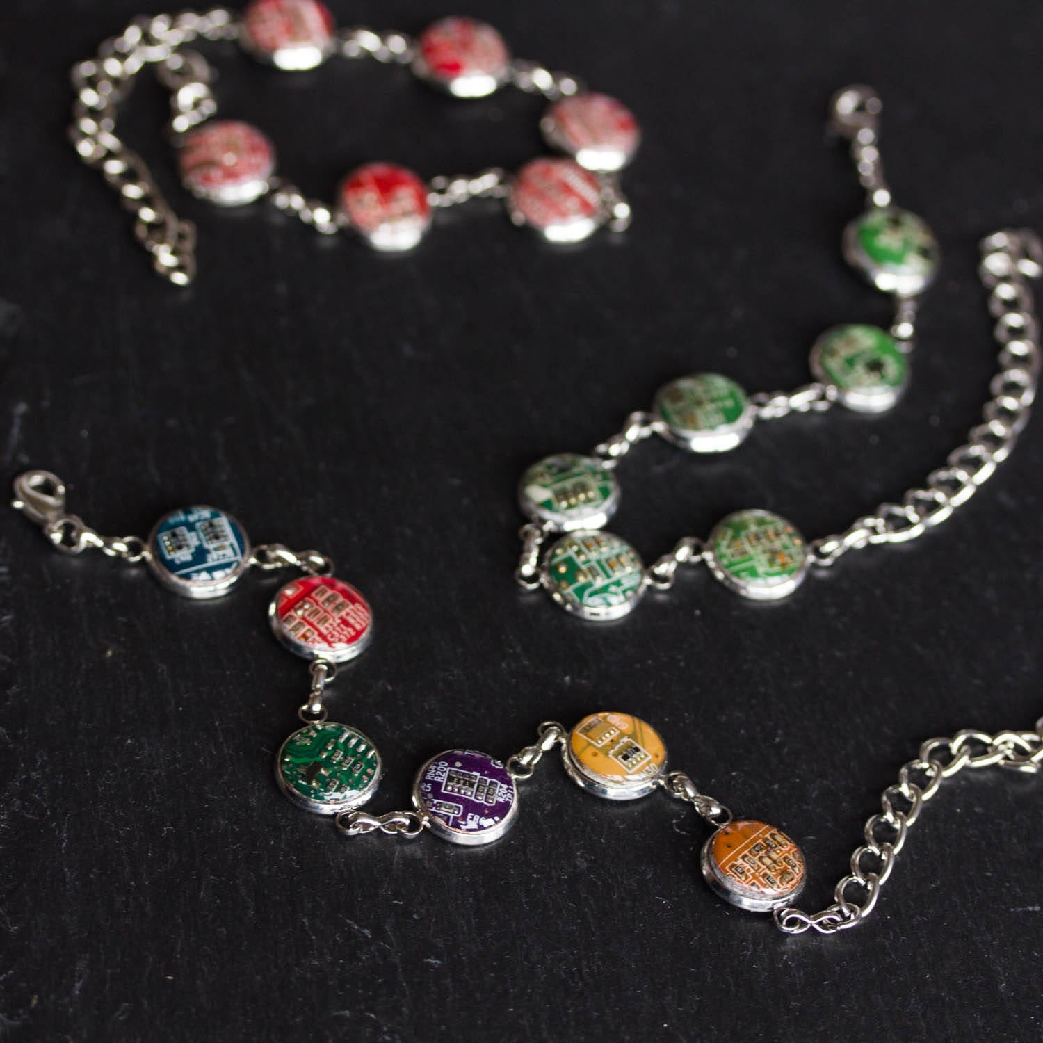 Colorful bracelet made with recycled circuit board, rainbow bracelet, unique jewelry