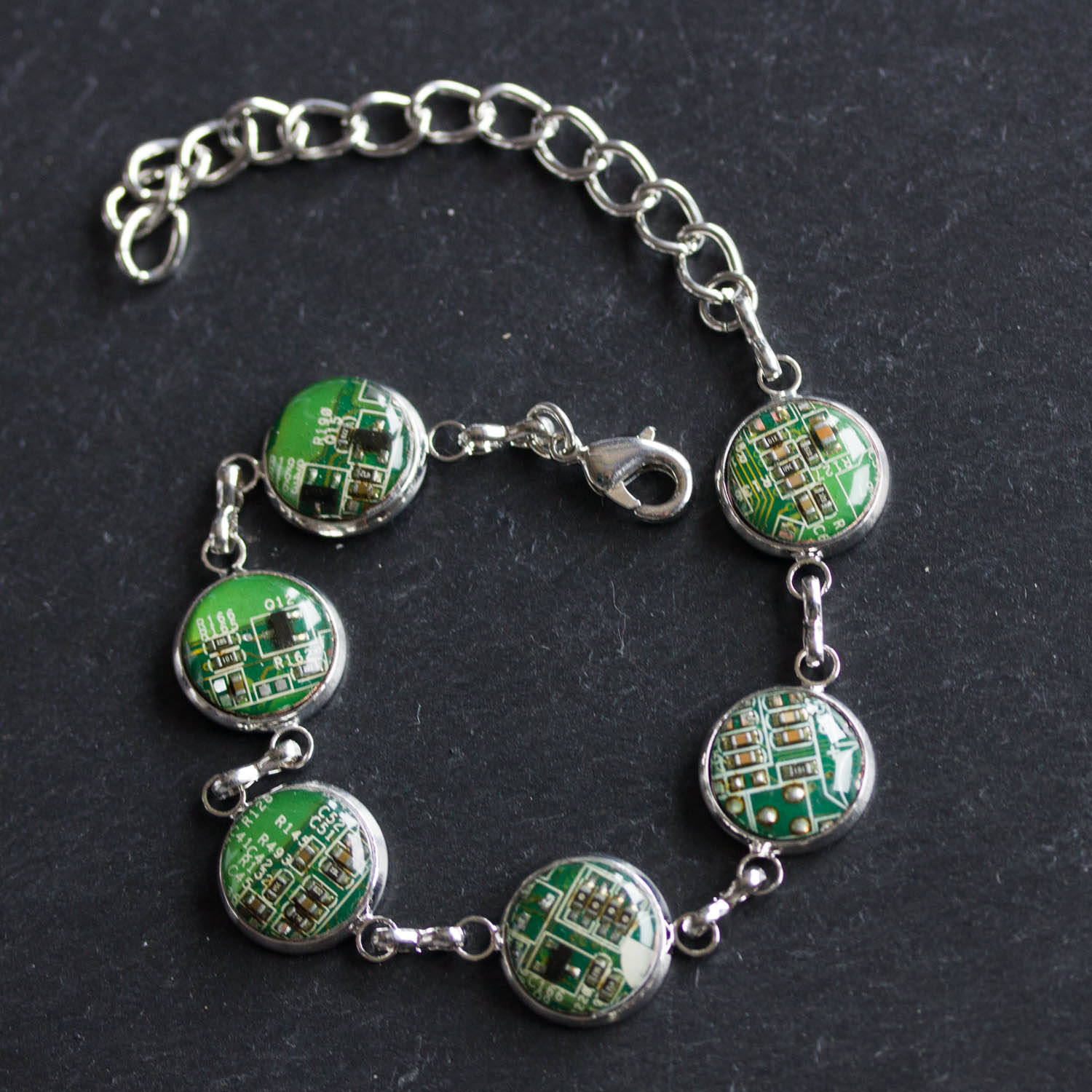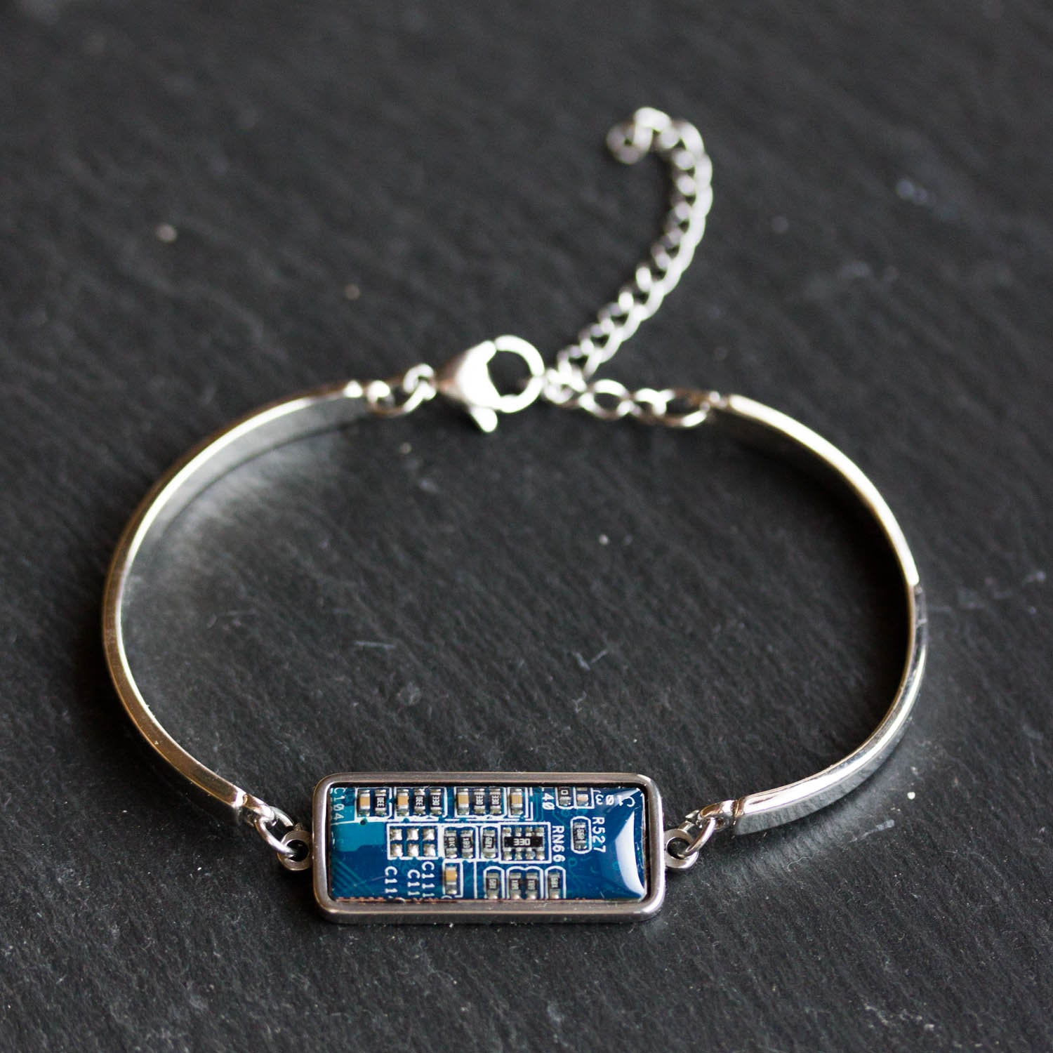 This gorgeous circuit board bracelet is a great accessory for an outstanding individuality. It is a perfect finishing to your unique style and is a statement piece. The bracelet is made...