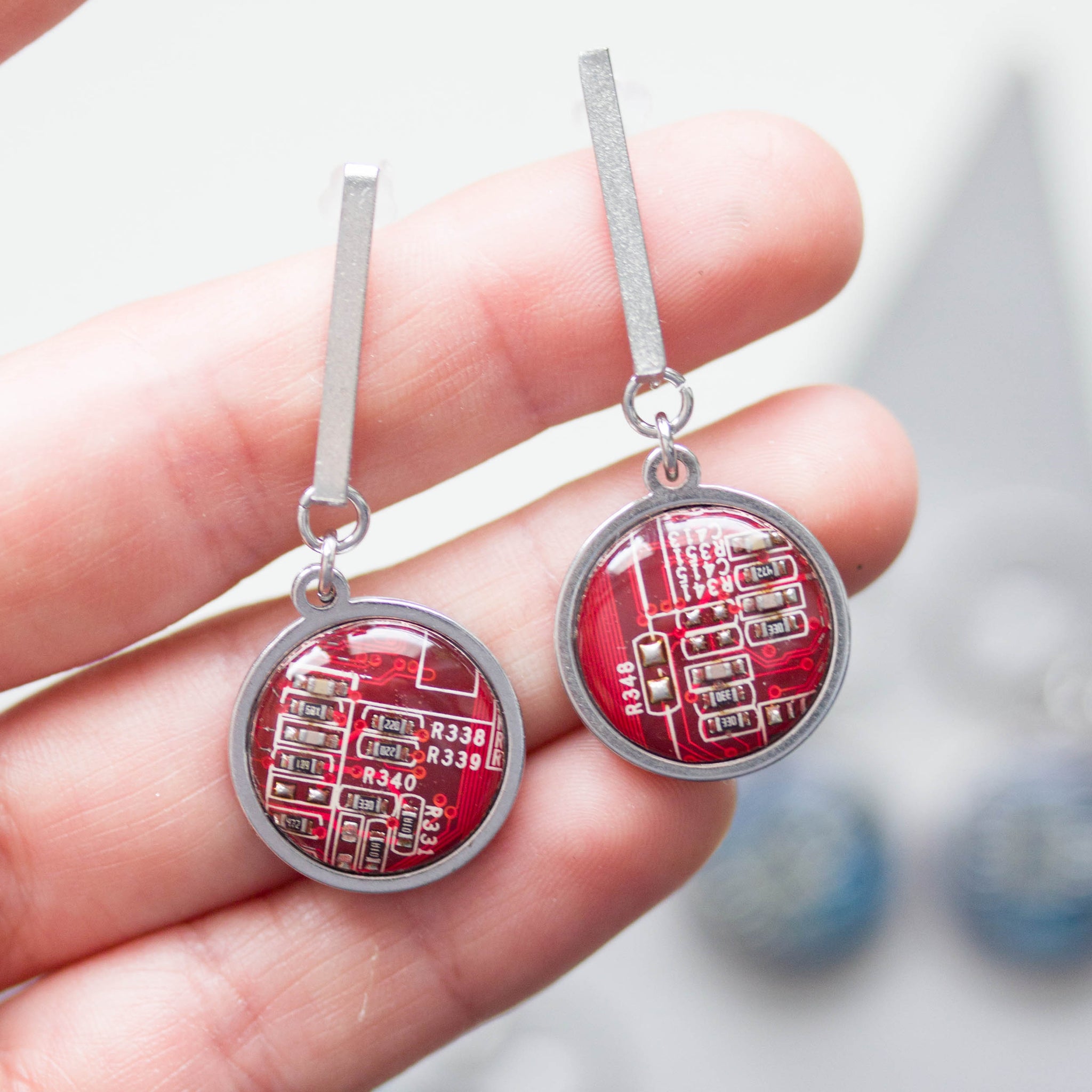Circuit Board Round Stud Earrings are a wonderful accessory for a geeky girl with a unique taste. If you are a techie admirer or really like extraordinary jewelry- this is made...