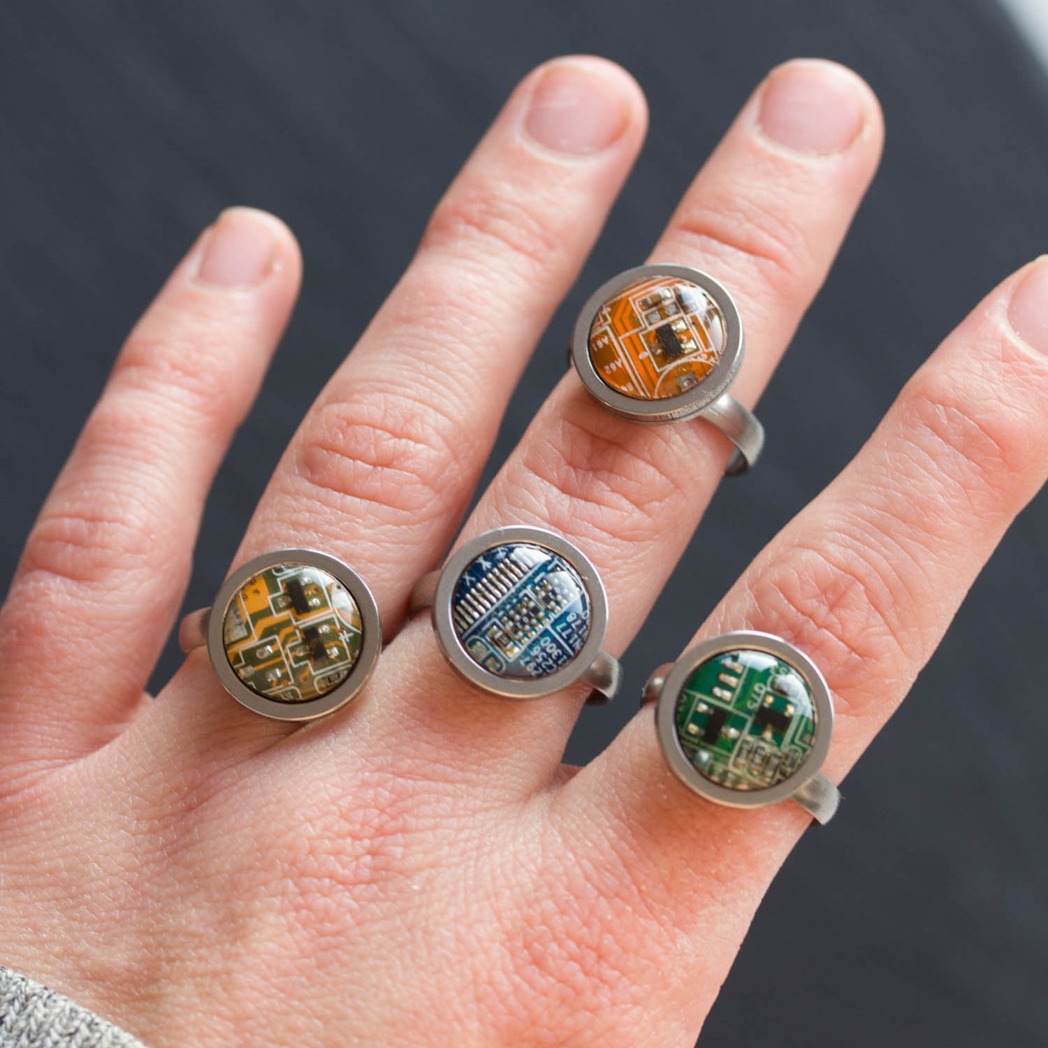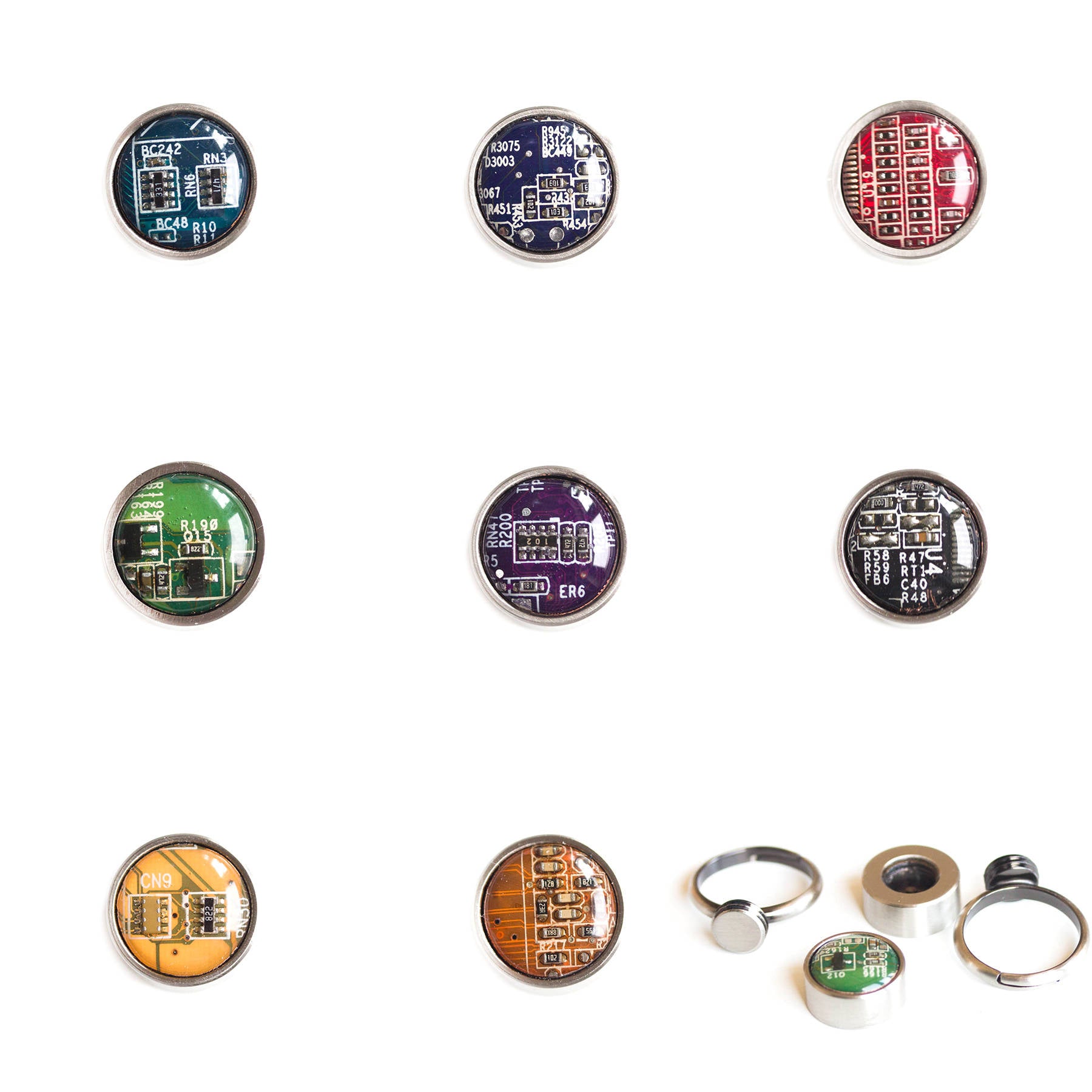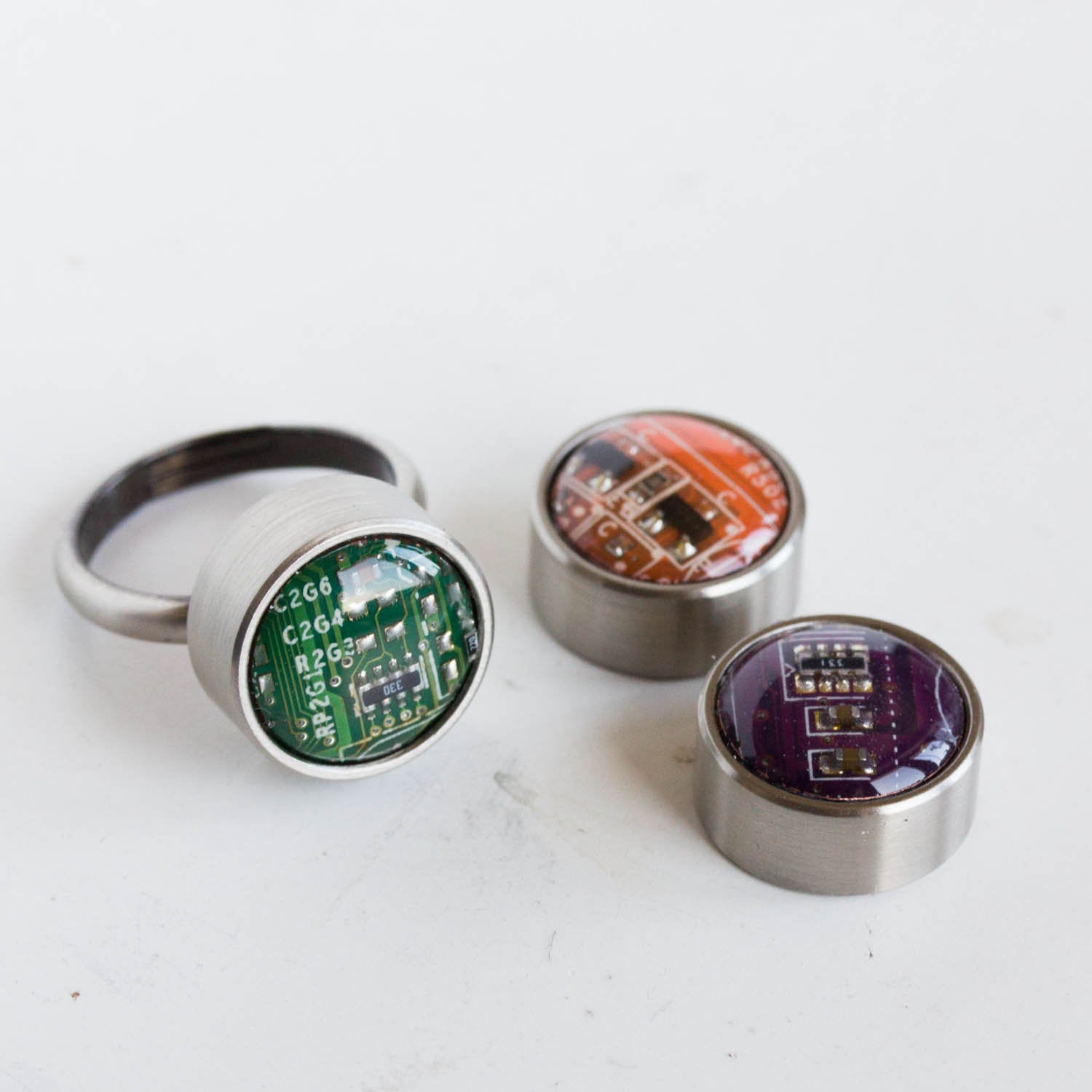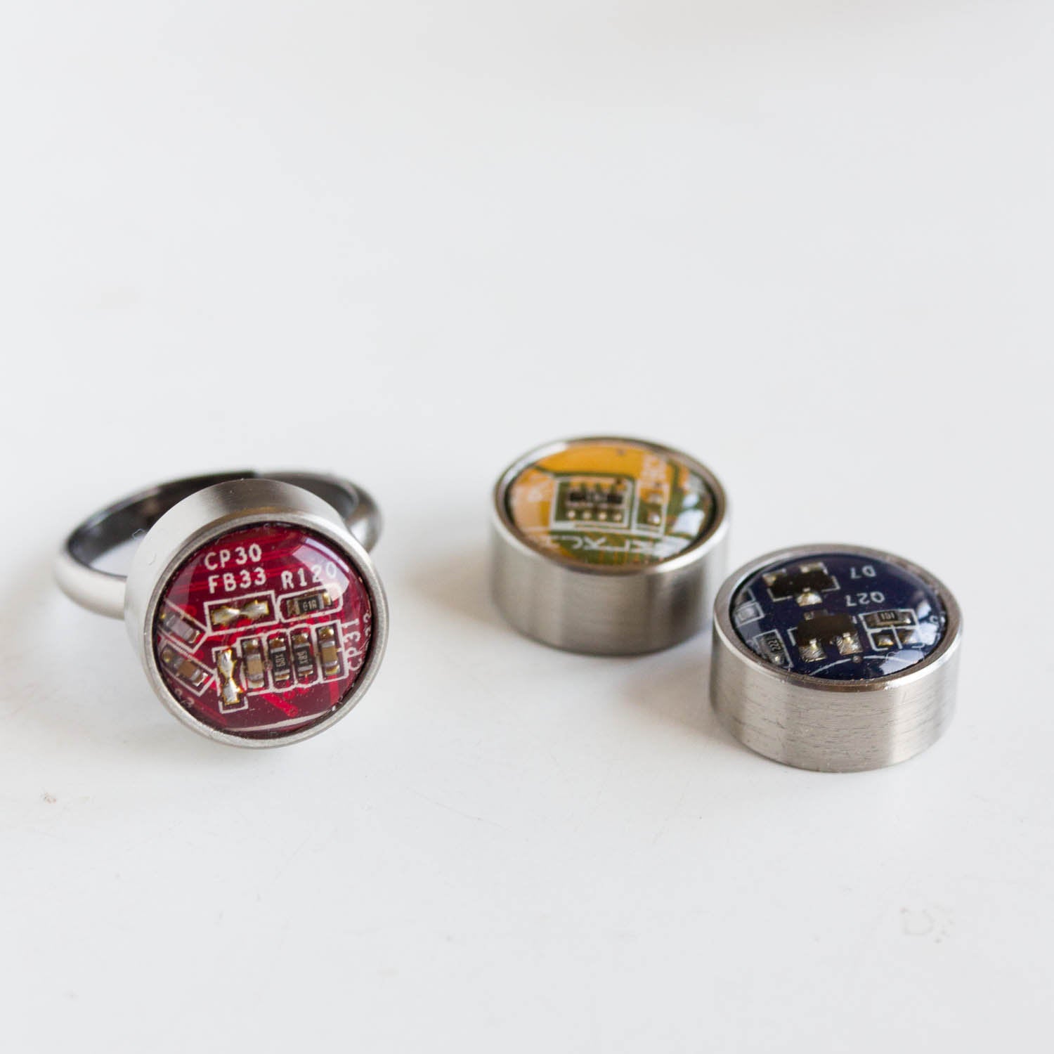 Cool ring with interchangeable Circuit board buttons. Buy just one ring with a screw button or buy all the 8 colors and change them as often as you want! These...